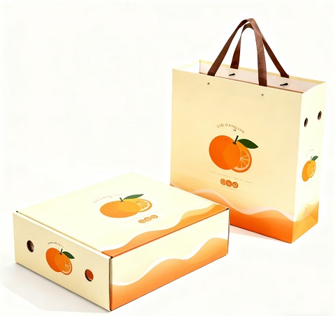 新鮮飽滿(mǎn)的橙子,需要精致包裝承載其天然鮮醇,而翻蓋盒搭配專(zhuān)屬手提袋的組合,正是高端水果包裝的優(yōu)選方案。盒身選用高克重特種觸感紙,表...